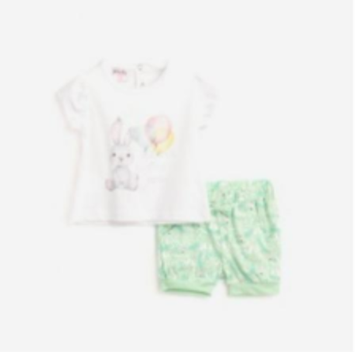 blanco, verde estampado con conejitos