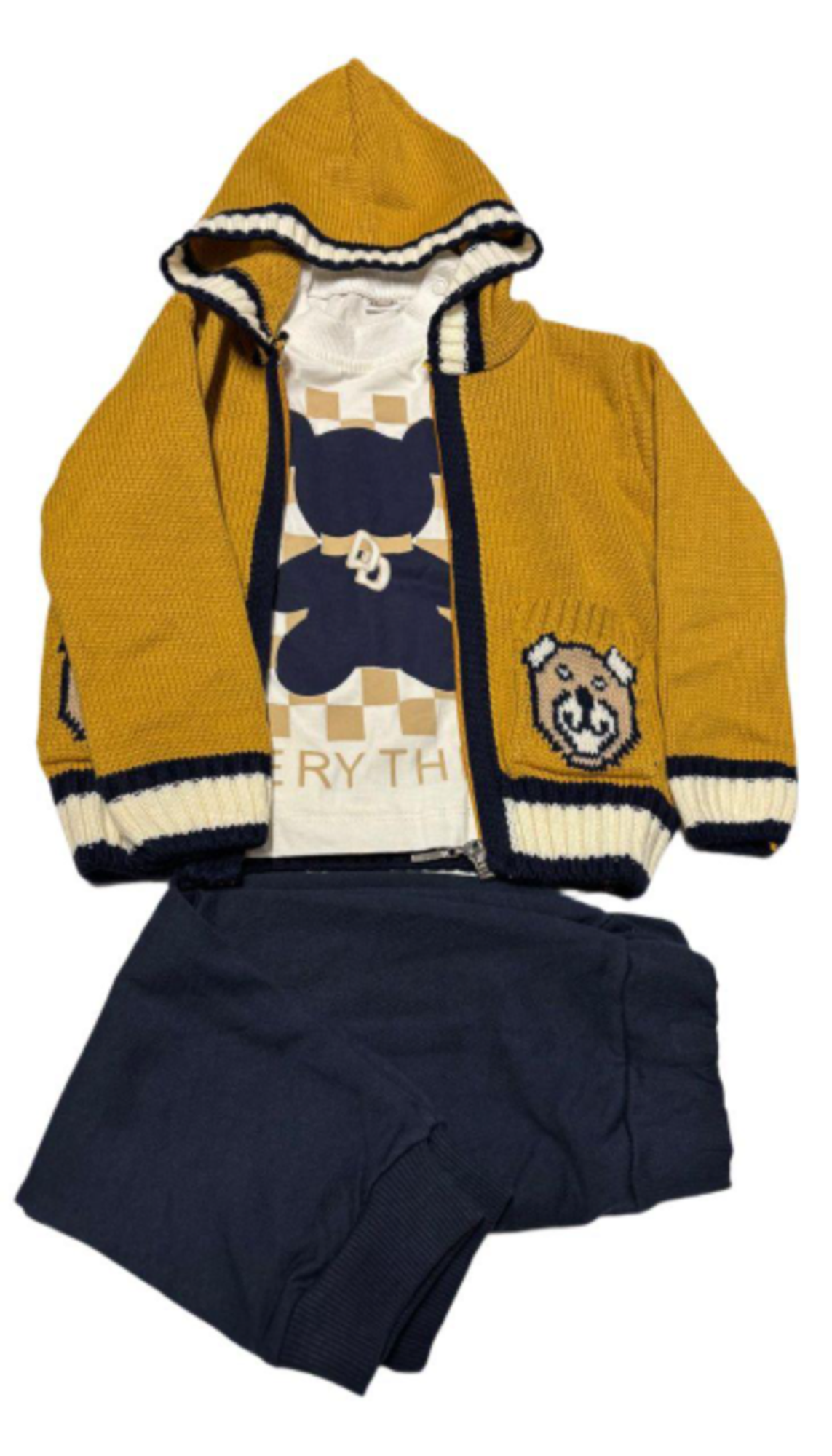 mostaza, blanco con dibujo y azul marino