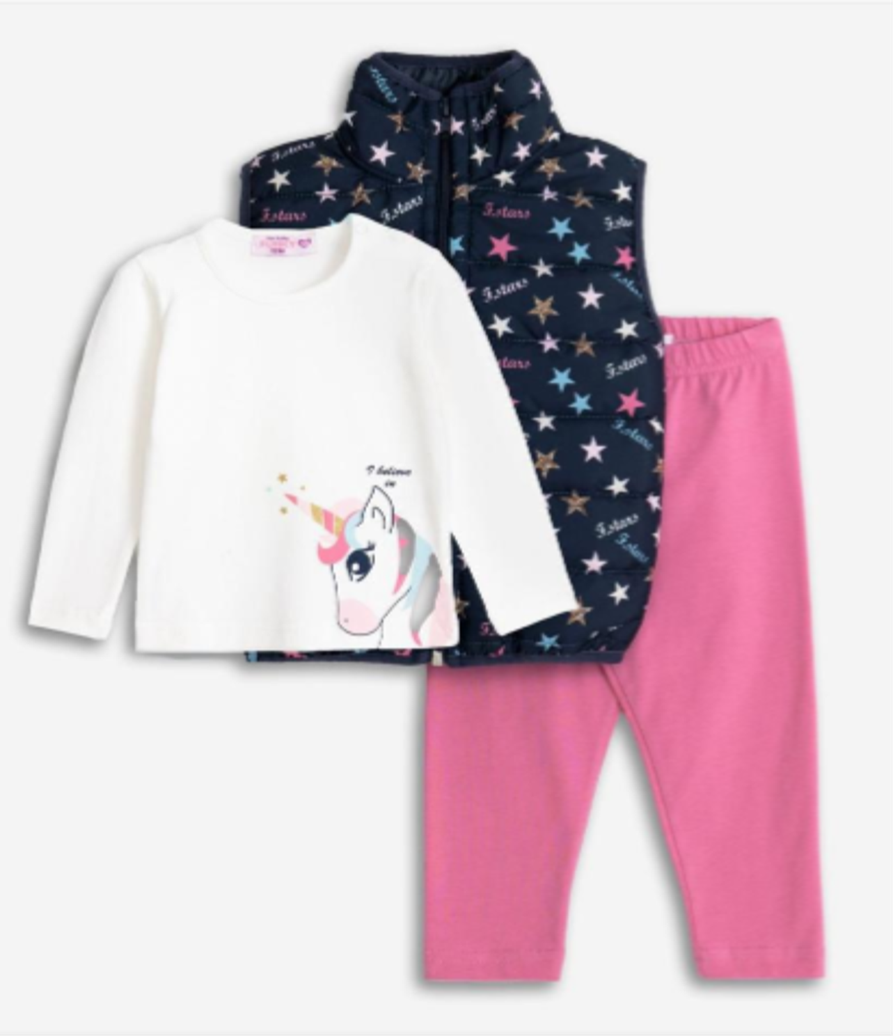 azul marino estampado, blanco con Unicorno y rosa